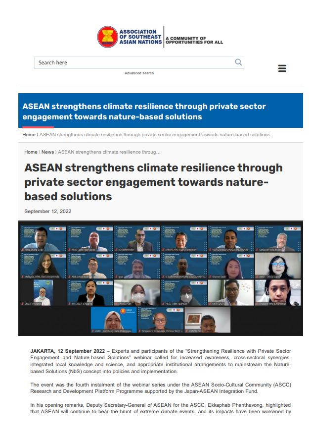 Sustainability Sharing Session - Nature based Solution in ASEAN Perspectives