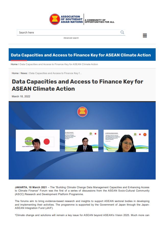 The ASCC Research and Development Forum “Building Climate Change Data Management Capacities and Enhancing Access to Climate Finance” was jointly organized by the ASEAN Secretariat and C&G Analytica.